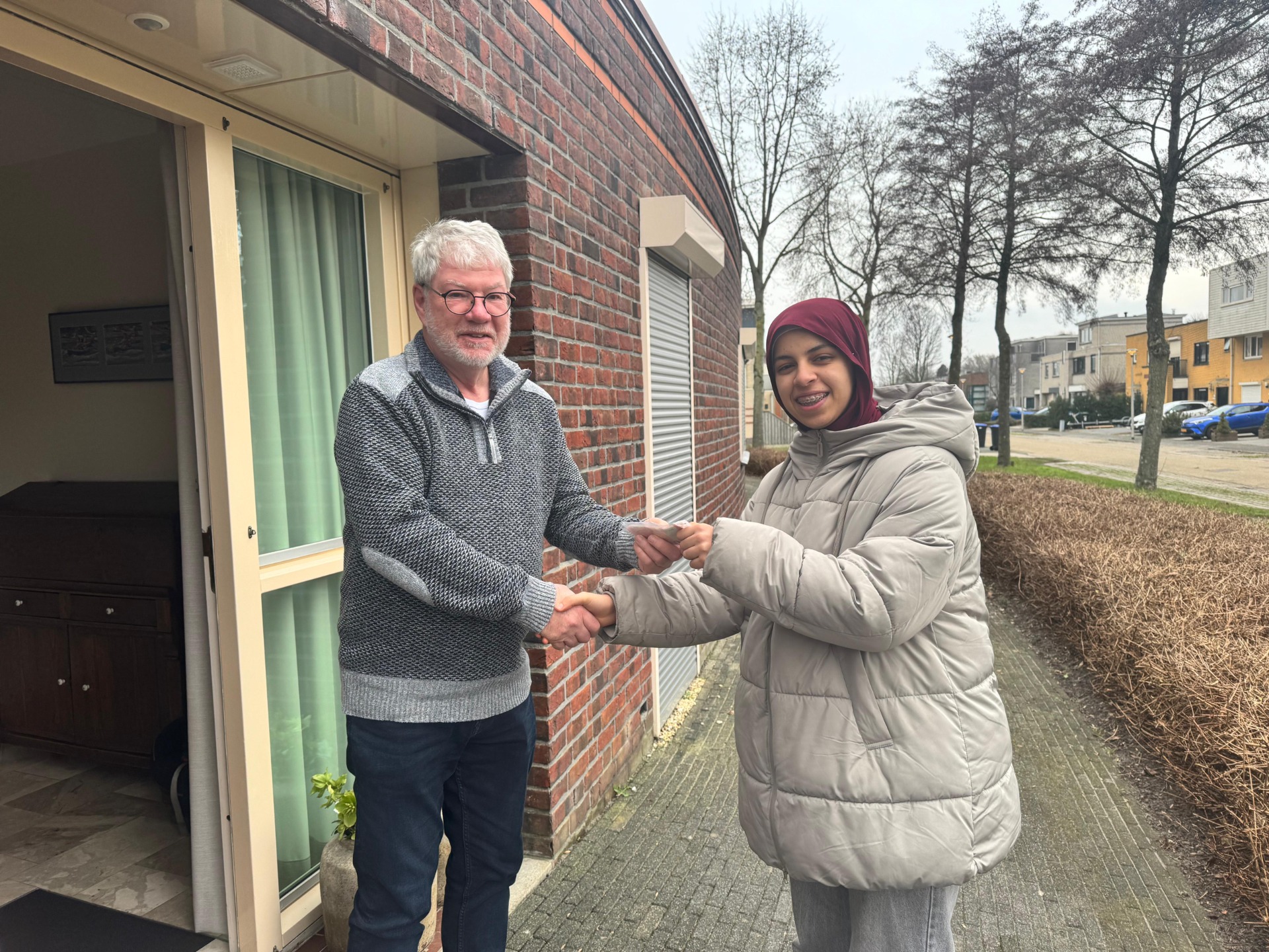 Een belangrijk onderdeel van de actie was dat iedere leerling zelf contact legde met een goededoelenstichting. Siman kwam speciaal vanuit Lelystad om de envelop persoonlijk te overhandigen aan Wim van de Koppel van AKZ. Hij bedankte de leerlingen en gaf aan dat het geld goed besteed zal worden.